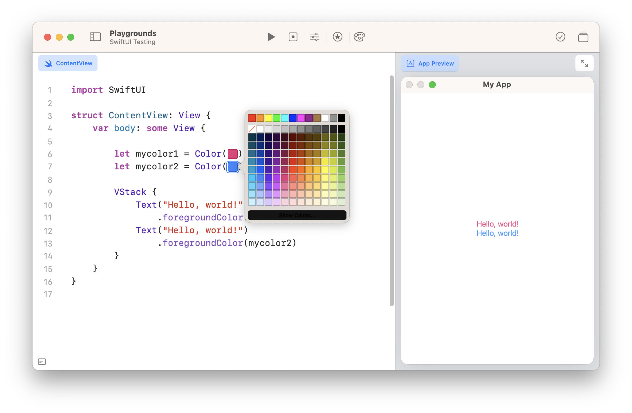 VStack 안에서 사용하고 싶었는데... 복사해서 붙여넣으니 아래와 같이 생긴다. 색상을 선언할때만 사용 가능한 것 같다.